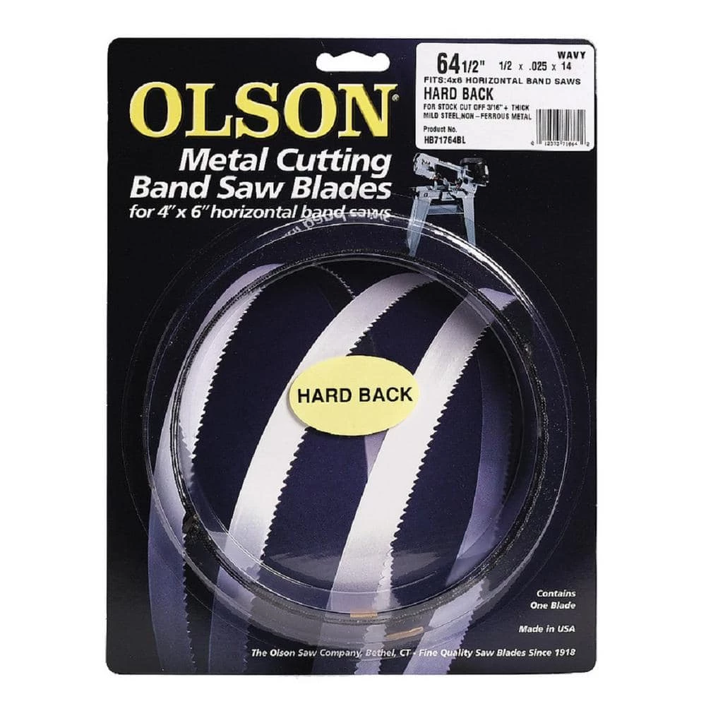 This blade is manufactured out of high carbon steel. The Hard-Edge Hard-Back band saw blade with the wavy tooth set of 3-teeth with varying sets to the right followed by 1-straight and 3-varying to the left is great for production sawing in easy-to machine metal at slow speeds with coolant. These are heavy-duty, durable commercial grade blades perfect for any industrial, woodworking or DIY project.