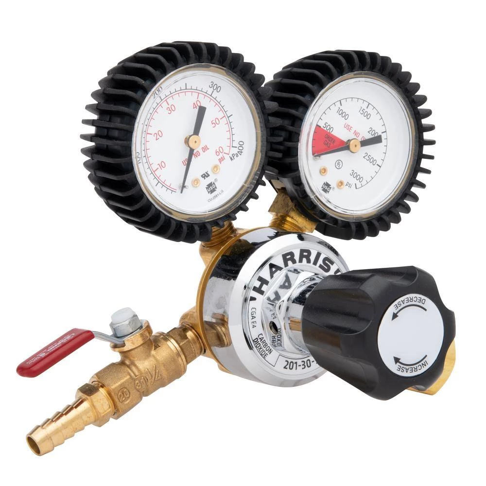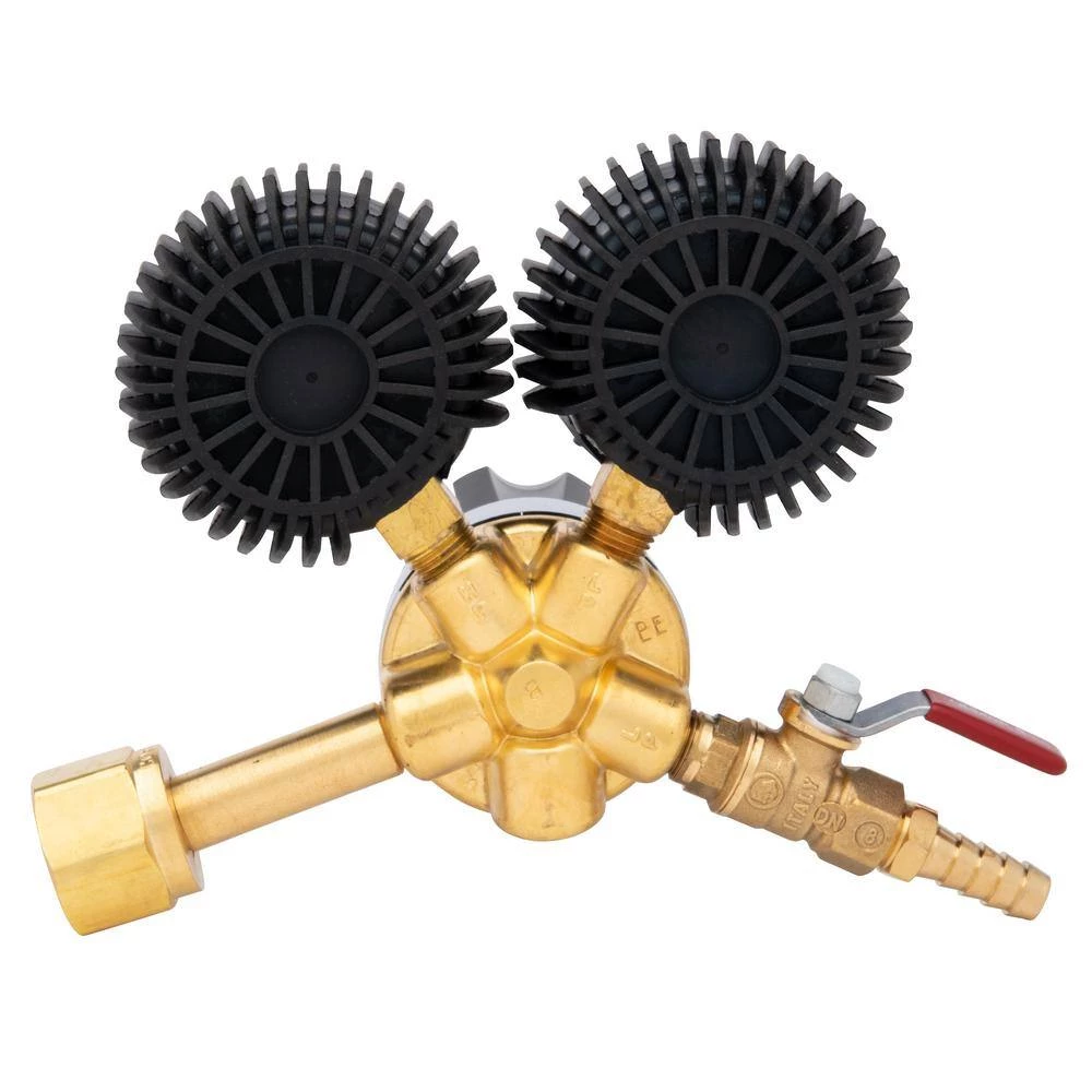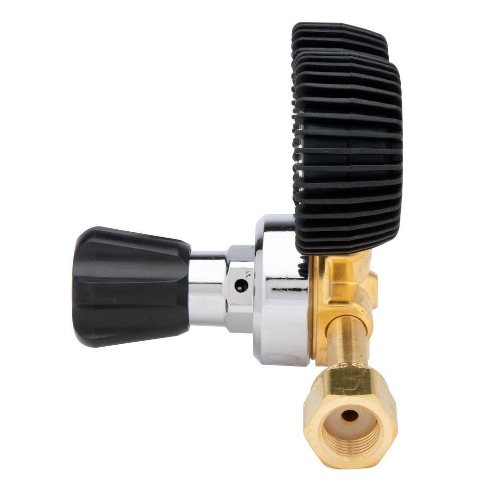 Model 201 is a nitrogen beverage regulator that is preset to deliver 100 PSI. It has a 1/4 in. flare and a check valve. Encapsulated seat for safety and longer service life.