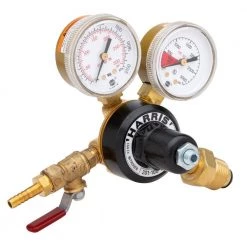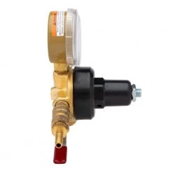 Model 201 is a nitrogen beverage regulator that is preset to deliver 100 PSI. It has a 1/4 in. flare and a check valve. Encapsulated seat for safety and longer service life.