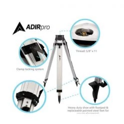 The Adir Pro 16 ft. Aluminum Grade Rod 710-22 comes with 5 telescopic lockable sections to give you that extra height up to 16 ft. when you need it, and it collapses to just 51 in. when you don’t. Perfect for use with construction laser and optical surveying tools, the Adir Pro 710-22 is available with markings in feet and inches. The Adir Pro 16 Foot Aluminum Grade Rod comes with a soft and durable carry case for ease of transportation. In addition, the Aluminum Tripod is a lightweight yet durable tripod for construction and equipment. It has rigid legs and metal pointed feet. The stable metal legs adjust quickly on any terrain. Once you have the legs exactly where you need them, lock them securely in place using the heavy-duty locking clamps. This resourceful tool stands as high as 63 in. and adjusts down to 38 in. The flat head has a 5/8 in. x 11 thread and readily supports lasers, optical levels, or other devices.