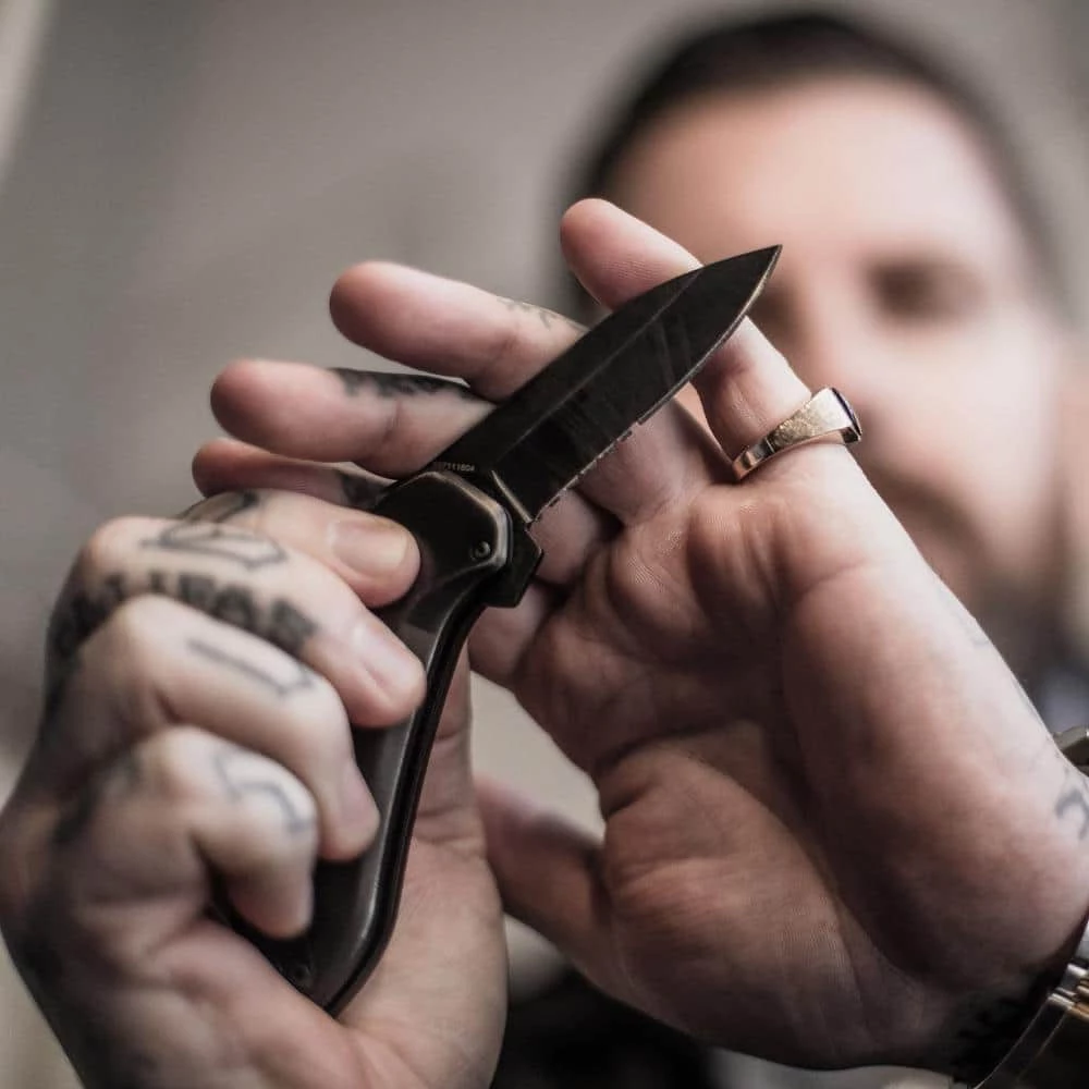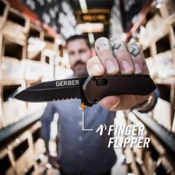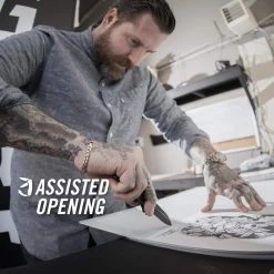 - Finger flipper intuitively springs the blade into use with the aid of the assisted opening mechanism