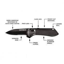 - Drop point blade is available in plain edge or serrated, as well as a black oxide coated version