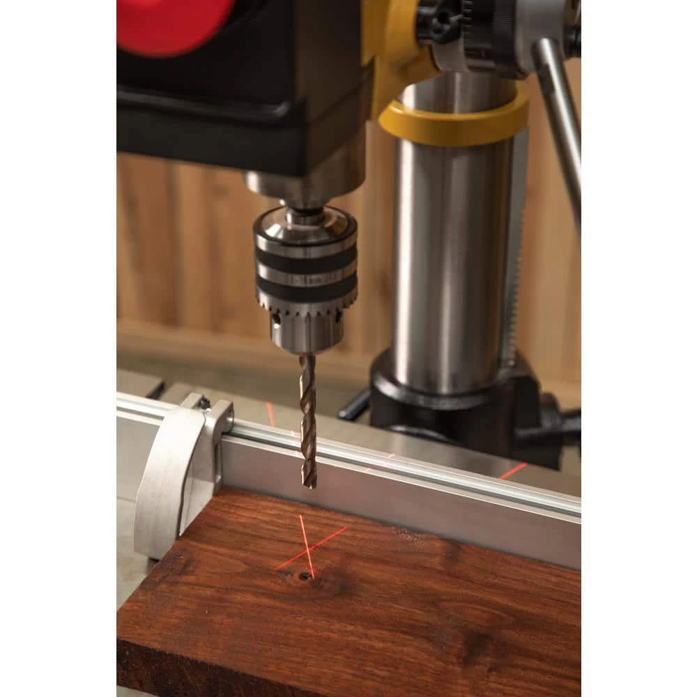 Gear up for the Ultimate Performance with the Powermatic PM2820EVS Drill Press. Gear driven power transfers torque consistently and efficiently for any project a wide range of materials. With a removable table with 45° rotation it has capacity for projects large and small. A high visibility laser pinpoints the drilling location for total accuracy. Powermatic has added a patented depth stop make countersinking easy. Included fence and stop help make repeat and production drilling efficient. Handles can be moved to right or left for ease of use. Oversized cast base give this drill press stability. Integrated LED light reduces shadows for project visibility.