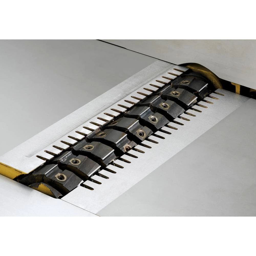 - Helical cutter head with 2-sided carbide inserts for fast knife changes with no adjustments
