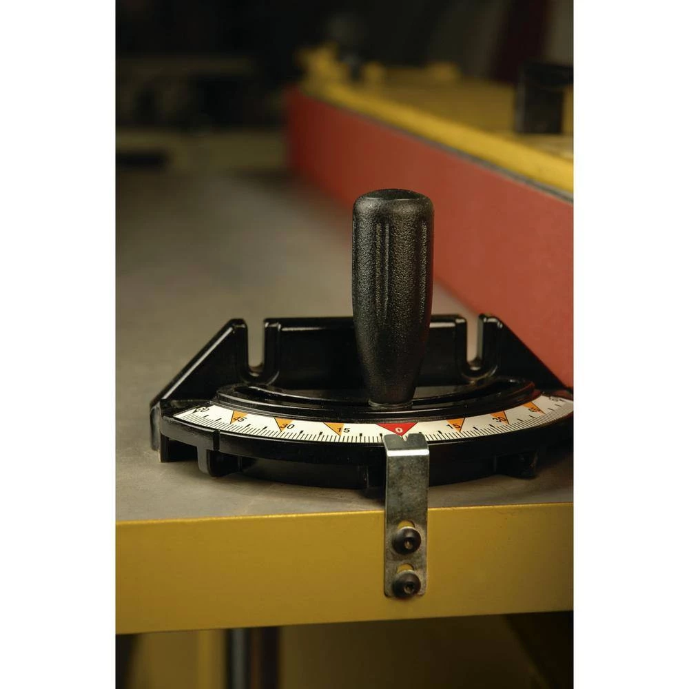 - Large 11-3/4 in. x 48 in. front worktable with 8 in. vertical travel tilts and 45° tilt, includes miter head for angle work
