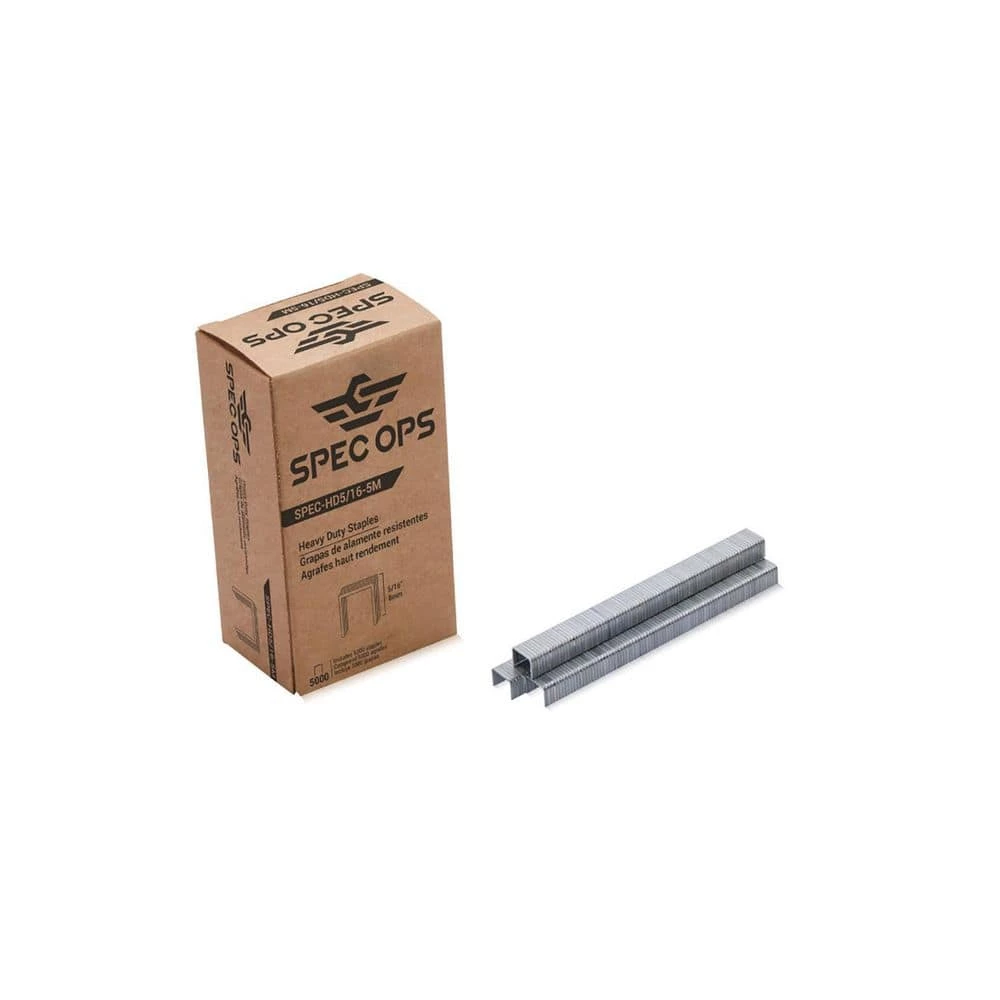 Created for maximum drive, control and rapid stapling, these SPEC OPS heavy-duty galvanized staples, 5/16 in. are compatible with all SPEC OPS Staple Guns and Hammer Tackers. These heavy-duty staples are made from high-carbon steel wire to help resist jamming and feature finely honed chisel points for quick, easy piercing. For use with any insulation, upholstery and carpentry job, these staples have maximum penetration and withstand any rust. Each box includes 5,000 staples. With each SPEC OPS Tools purchase made, we support our nation’s heroes by donating 3% of proceeds to veteran and first responder causes.