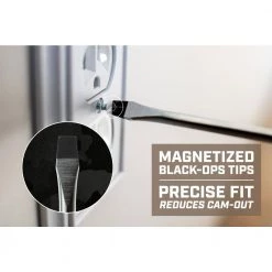 - Magnetized, black-ops coated tips for a precise fit that reduces cam-out