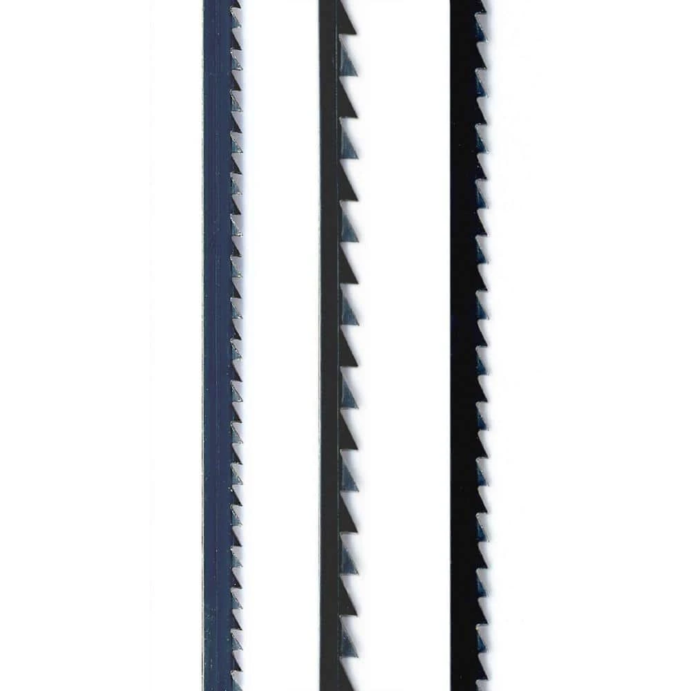 This Assortment pack of 5 in. pinned end scroll saw blades are manufactured out of high carbon spring steel. It has six 0.070 in. W x 0.010 in. T x 18.5 TPI Skip Tooth blades; six 0.10 in. W x 0.018 in. T x 15 TPI Regular blades and six 0.10 in. W x 0.018 in. T x 10 TPI Regular blades. These blades are great for fine scrolling, tight curves.