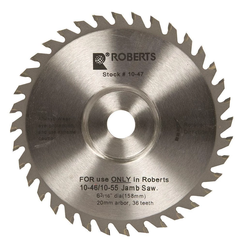 The ROBERTS 10-47-2 is a 36-tooth Jamb Saw Replacement Blade featuring carbide tips for durability. It easily cuts through tough wood and is excellent for cutting door jams, baseboards and along walls. This blade can be used with the ROBERTS 10-56 Jamb and Undercut Saw, 10-55 Jamb Saw and 10-46 Jamb Saw.