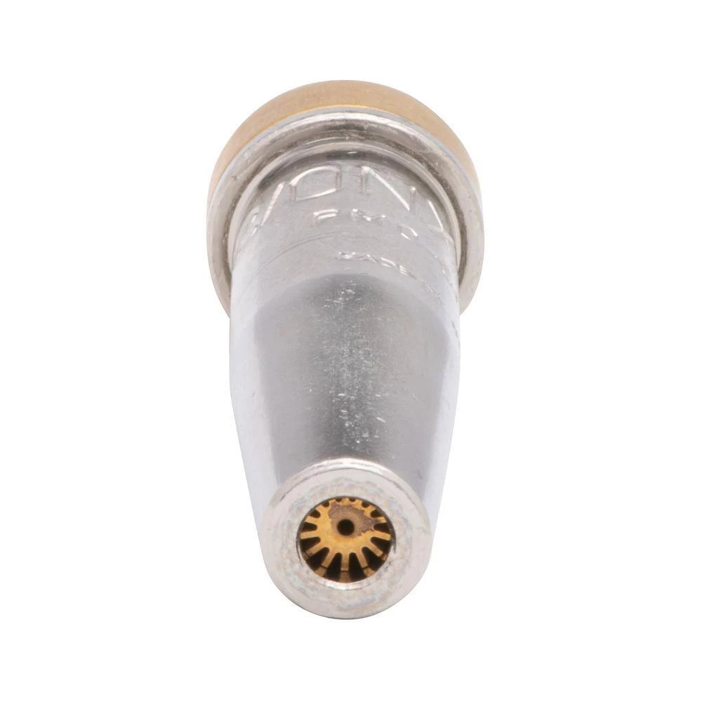 - Two-piece hand cutting tip with chrome-plated brass outer shell and brass internal shell