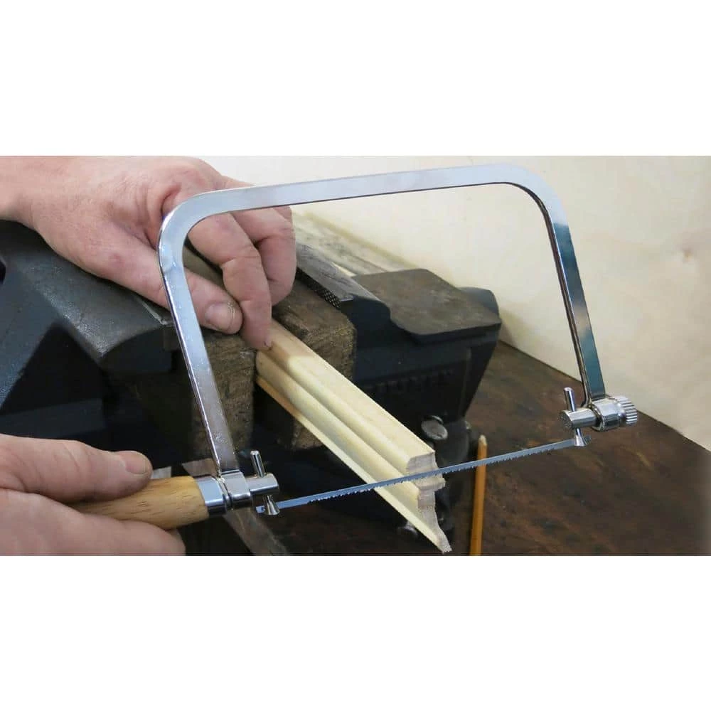 Olson Coping Saw with Unique Blade Tensioning End Screw is a sturdy, professional saw that allows standard pin end coping saw blades to be tensioned at both ends (using the handle and thumb screw) for more precise cutting of intricate and irregular shapes with complete control. Blades can be turned 360° to saw in any direction push or pull stroke. Depth of cut is 5 in. Hardwood handle. Equipped with Olsons 15 TPI blade.