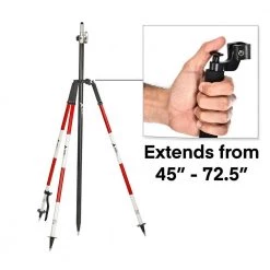 The AdirPro Red and White Prism Pole Tripod features a side-entry thumb screw head, making setting up and removing prism poles easy and efficient. Constructed of lightweight aluminum, it is the ideal alternative to the Northwest Instrument NTP12, CST Berger 67-4250 and Seco 5218-02 tripods. Quick Setup This prism pole tripod has a grip and slide control that allows surveyors to insert 1 to 1.25 in. Dia poles from the side or 1.5 in. poles through the top. for added stability, you can tighten the twist knob lock on the side of the tripod to hold your prism pole in place. with replaceable spurred feet, this surveying tripod securely digs into the ground, even on slippery and uneven surfaces. in addition, the tripod’s legs extend up to 6 ft. and collapse up to 3.5 ft. Once the legs are adjusted to a desired height, construction professionals can secure its position with the clamp locks. Heavy-Duty Construction Using impact resistant materials and quick release telescoping aluminum legs, this AdirPro tripod is a durable surveying tool for any working environment.