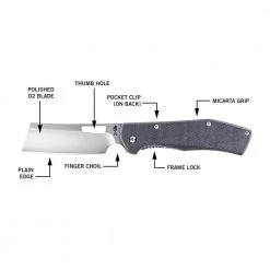 This pocket knife is built for utility with a cleaver blade in a folding application. The Flatiron pocket folder features a robust 3 in. blade, a textured micarta handle, and a sturdy frame lock design. The reverse curvature of the knife’s spine keeps knuckles away from the cutting surface, allowing the user to cut and chop with precision.