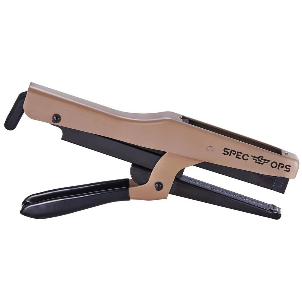 The SPEC OPS M3 Precision Plier Stapler is the ultimate plier stapler for industrial tagging, light packaging, retail, restaurant, dry cleaning, laundry services, florists and other high-volume precision stapling applications. Using precision 3/8 in. crown staples with a 1/4 in. leg length, its ideal for all applications where a fine-wire narrow crown staple is critical. The top-load design makes for lightning-quick reloading for improved productivity while the jam-free technology eliminates frustrating staple jams. The Reduced Effort Drive Technology is combined with an ergonomic design and a tactile non-slip rubber grip for reduced effort stapling and improved operator comfort.