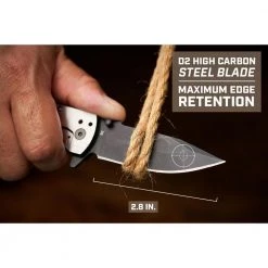 - Compact blade forged with wear-resistant, D2 high-carbon steel for maximum edge retention