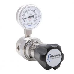 Model HP743 is a single-stage stainless steel pipeline regulator for pipeline and other applications up to 3000 psi inlet pressure. The Model HP743 regulator is suitable for corrosive gas applications, high-purity gas applications, research sample systems gases, process analyzer gases, gas chromatography, EPA protocol gases, laser gas systems and emission monitoring. Stainless steel line regulator, 50 psi, 1/4 in. NPT ports with gauge.