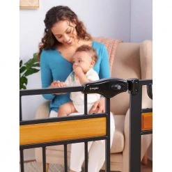 The day has come. Your baby is now mobile. Especially if you have a little climber, a baby gate is a must. If you’re looking for a gate with a little style, the Regalo Home Accents Extra-Tall Designer Baby Gate has enhanced styling’s while keeping the functionality you need from a baby gate. Boasting a black steel frame, with cherry wood accents, the Extra-tall designer gate stands 37 in. H for extra-protection and was made with durability and strength in mind. The gate is attractive, simple to use and adjustable to accommodate door openings between 30 in. to 42 in. To make gate installation a breeze, pressure mount the gate with the included rubberized tension knobs or use the included hardware to attach the gate to your wall.