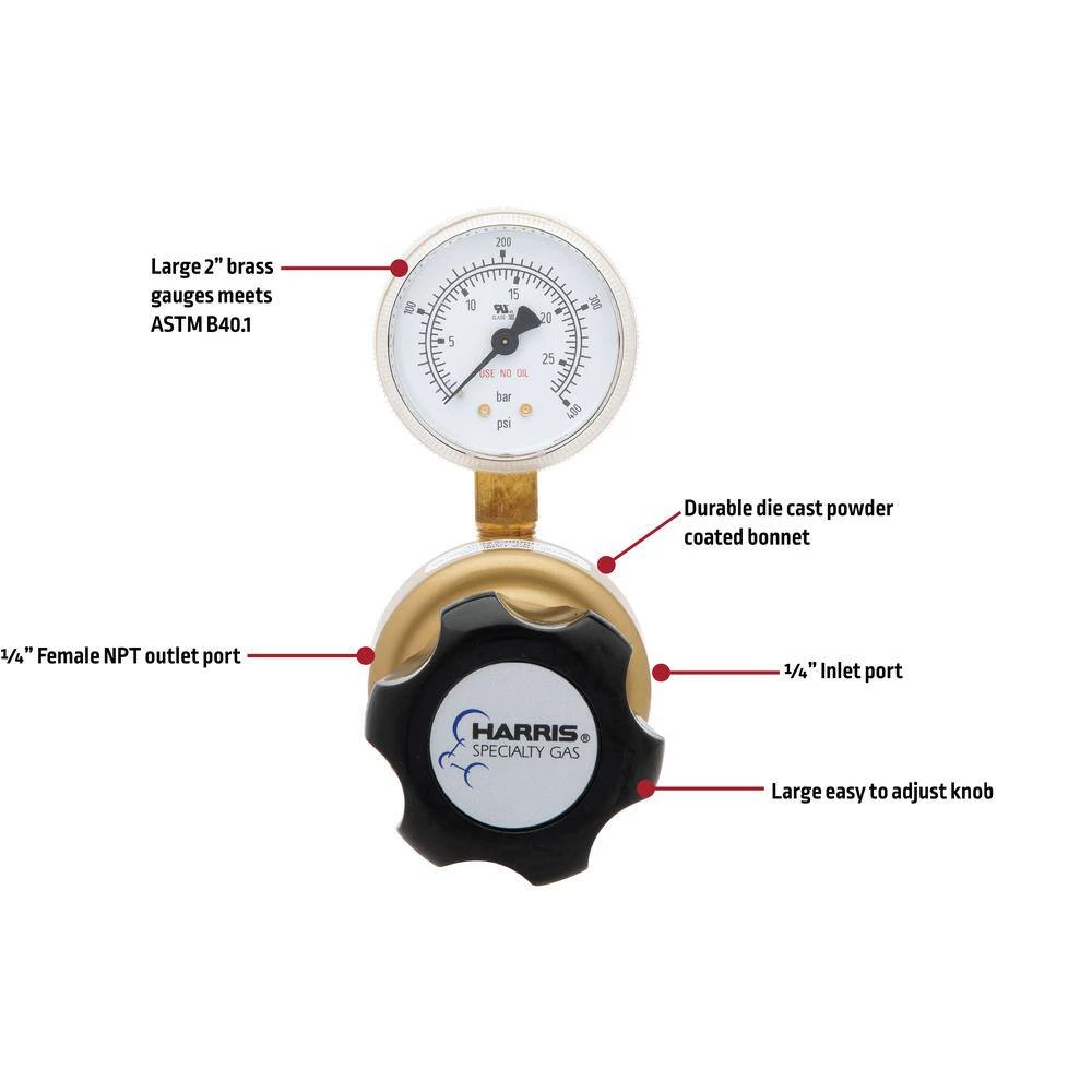- Conforms to CGA E-4 standard for gas pressure regulators