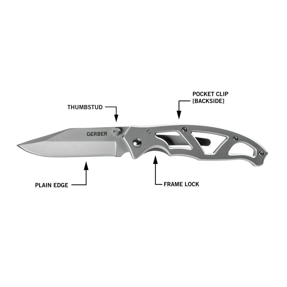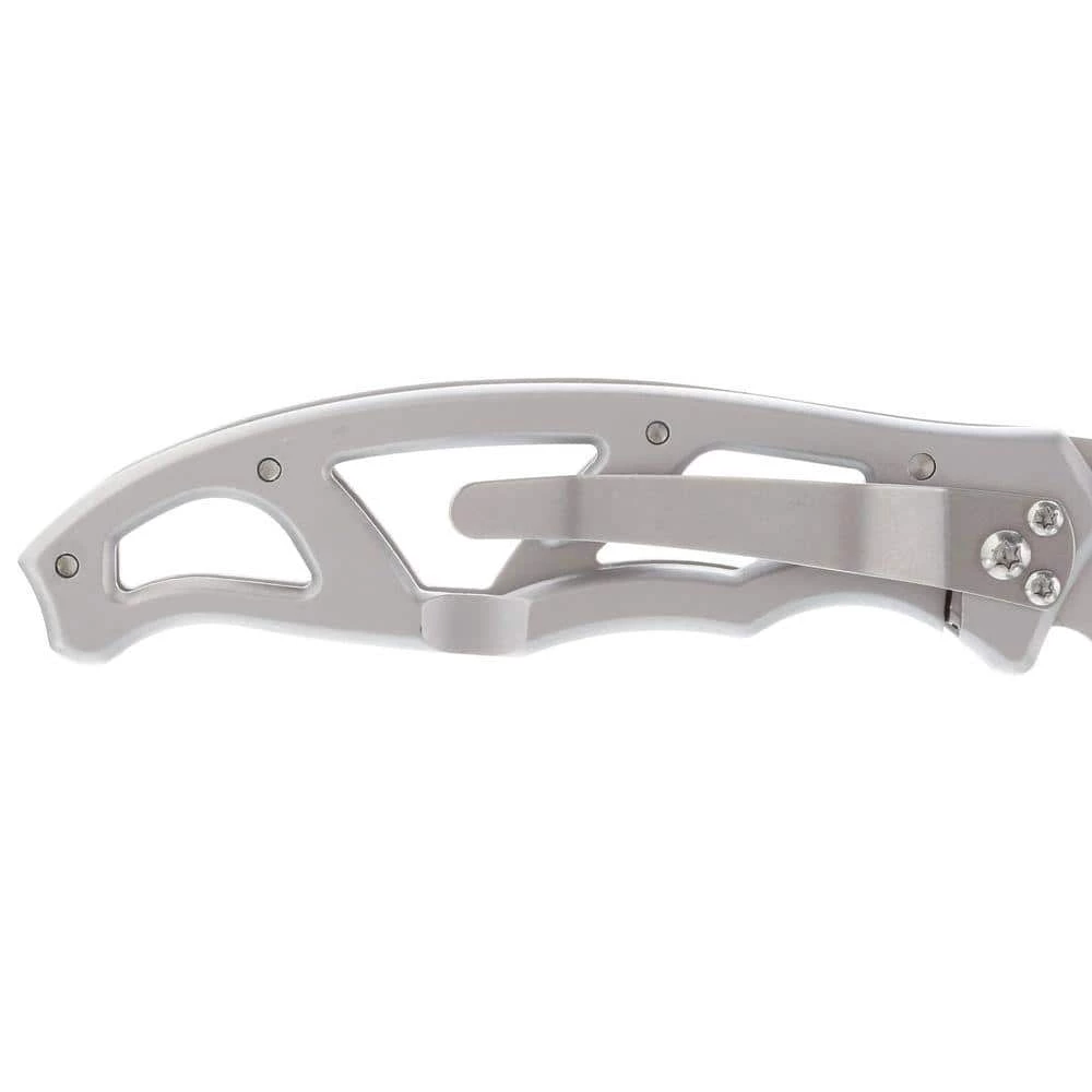 The Paraframe I is based on a minimal frame-lock design. It’s a beautifully simple, open frame knife with a fine edge locking blade that is lightweight, easy to clean and opens effortlessly. Built with a smooth stainless steel handle and a clip for secure travel, the Paraframe I is everything that an everyday carry folder should be.