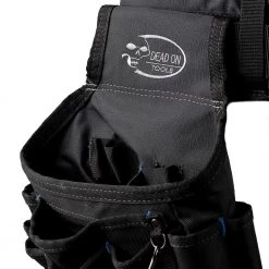 Dead On has risen again! We, the Dead On Tools team, have upgraded our tool rigs and pouches. Dead On tool-users don’t check their personality when they punch the clock. Our products match that lifestyle and stand out in a category of commodity products. The Dead On Electrician’s Tool Rig is the ideal tool organizer for electricians or other professionals. The HDP411014 is constructed with 4X Strength 2-ply 1680 Denier Heavy Duty Polyester for added durability. Gel-padded suspenders with innovative LoadBear Padded Strech technology allow for additional comfort and easy movement. The suspenders also include a chest retaining strap and are removable as well as completely adjustable. The padded waist belt stays secure with monster grommets on belts that support approximately 14 pockets for small and medium-sized tools. This electricians rig features one steel hammer holder and an additional loop for hammers or other long-handled tools, cats-paw sleeves, and a tape measure clip. It even has a cell phone holder designed to hold most smartphones. The dual pouches on the Dead On Tools Professional Electrician’s Suspension Rig are ideal for electrical work and have vinyl reinforced barrel-bottom pouches for extra capacity. This rig also has single body pouch construction with a speed square pocket. Designed with the skilled craftsman in mind, this rig also features a moisture-wicking belt and shoulder lining.