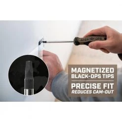 - Magnetized, black-ops coated tips for a precise fit that reduces cam-out