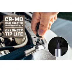 - CR-MO heat-treated double-sided bits for up to 2x longer tip life