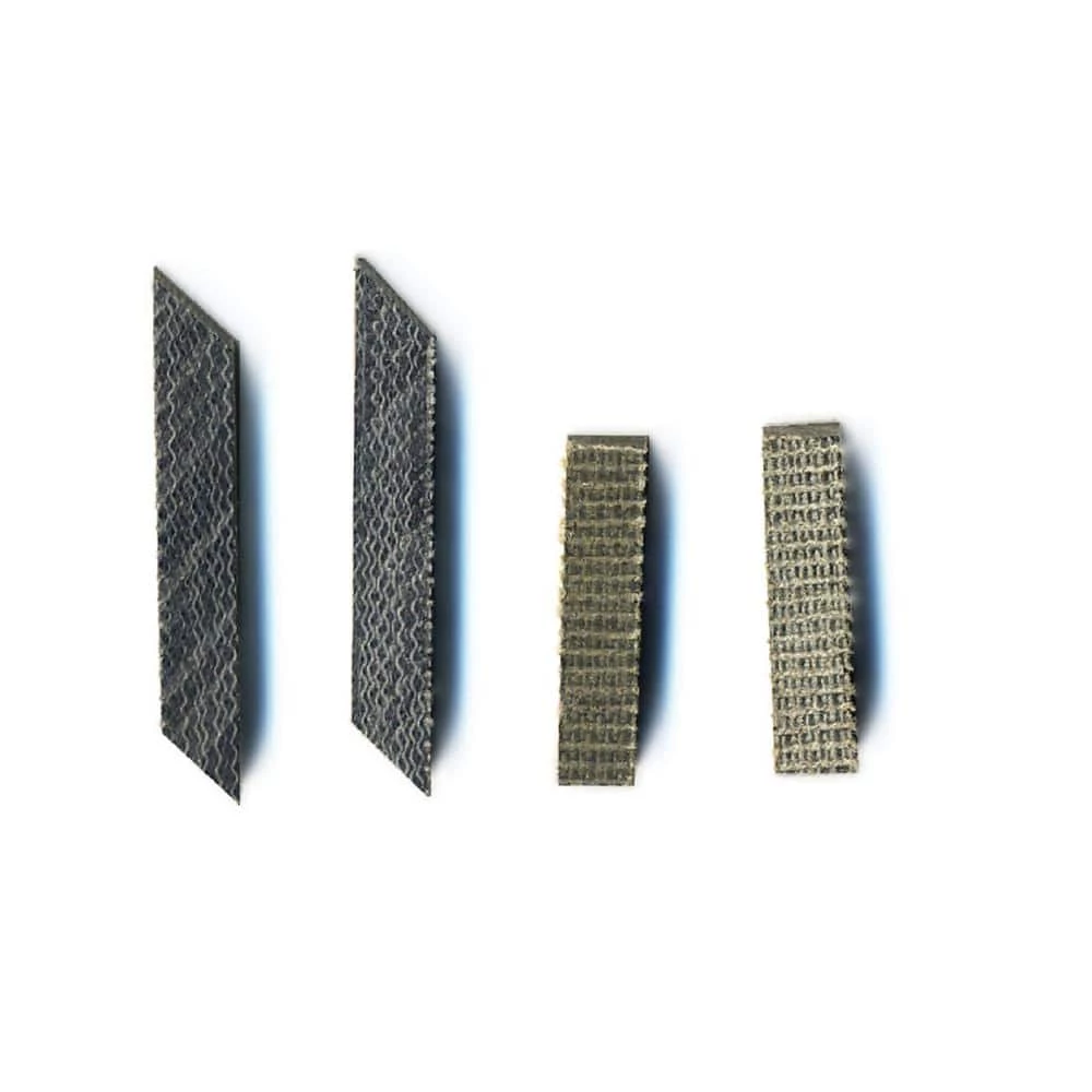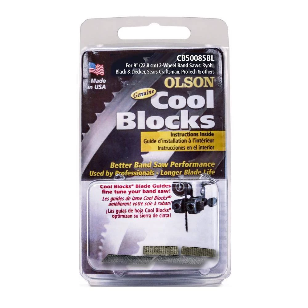 Cool Block band saw blade guides replace standard metal or plastic guides and enhance cutting performance. Cool Block blade guides are made from a high tech, non-metallic composite material, graphite impregnated phenolic laminate which contains 3 synthetic dry lubricants that lubricate the blade but do not make it oily. The metal to metal contact made by old metal guide blocks creates heat and friction which cause premature wear and breakage.